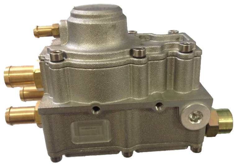 此产品为一次减压阀,利用发动机循环水对气体进行加热。内置真空转换阀,可依据发动机工况自动调节出气流量,适于发动机排量2.0L以下的多点喷射燃料转换装置。